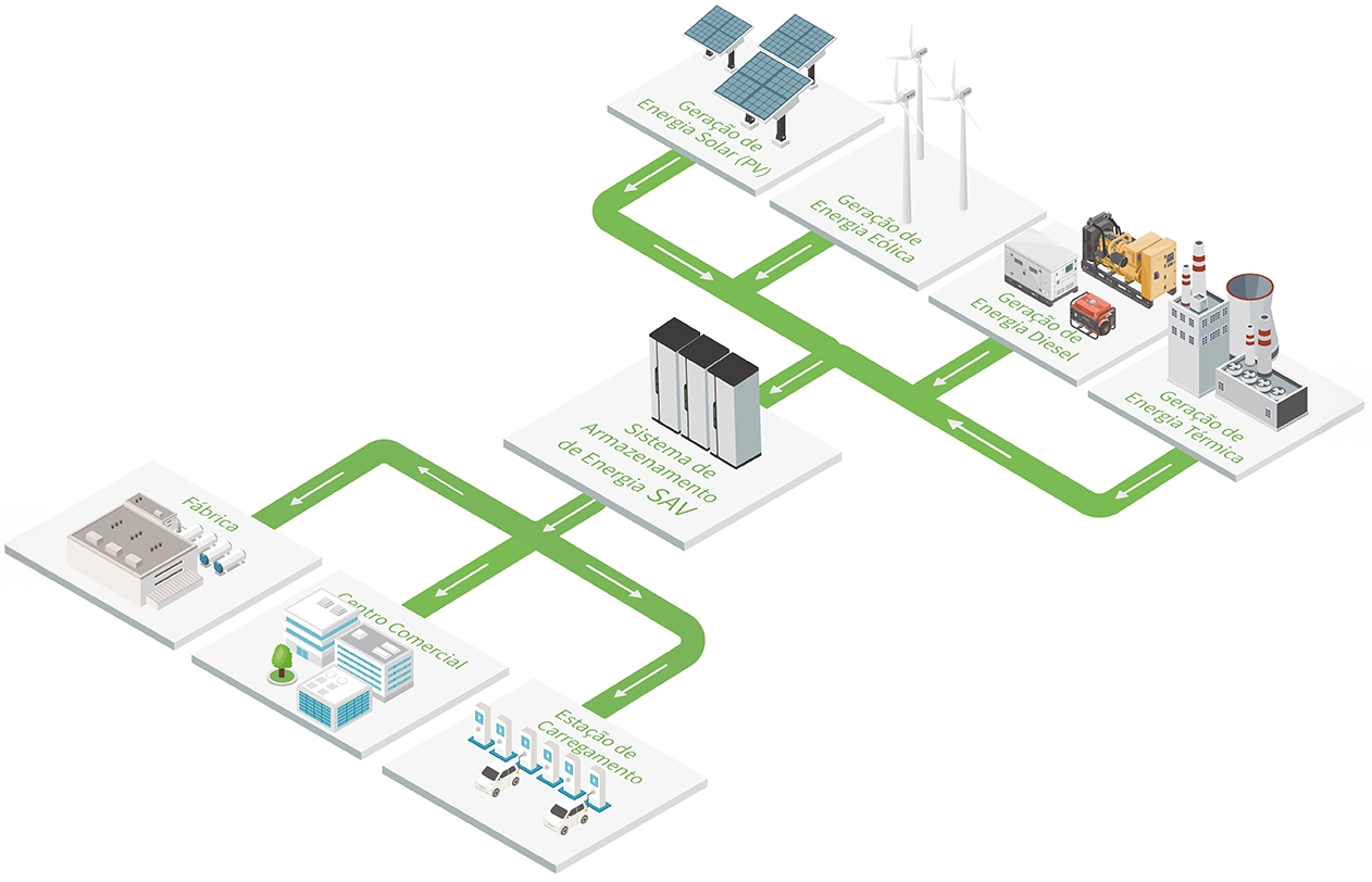 Arbitragem de Energia: Armazena eletricidade nos momentos mais baratos e utiliza quando as tarifas estão altas.
